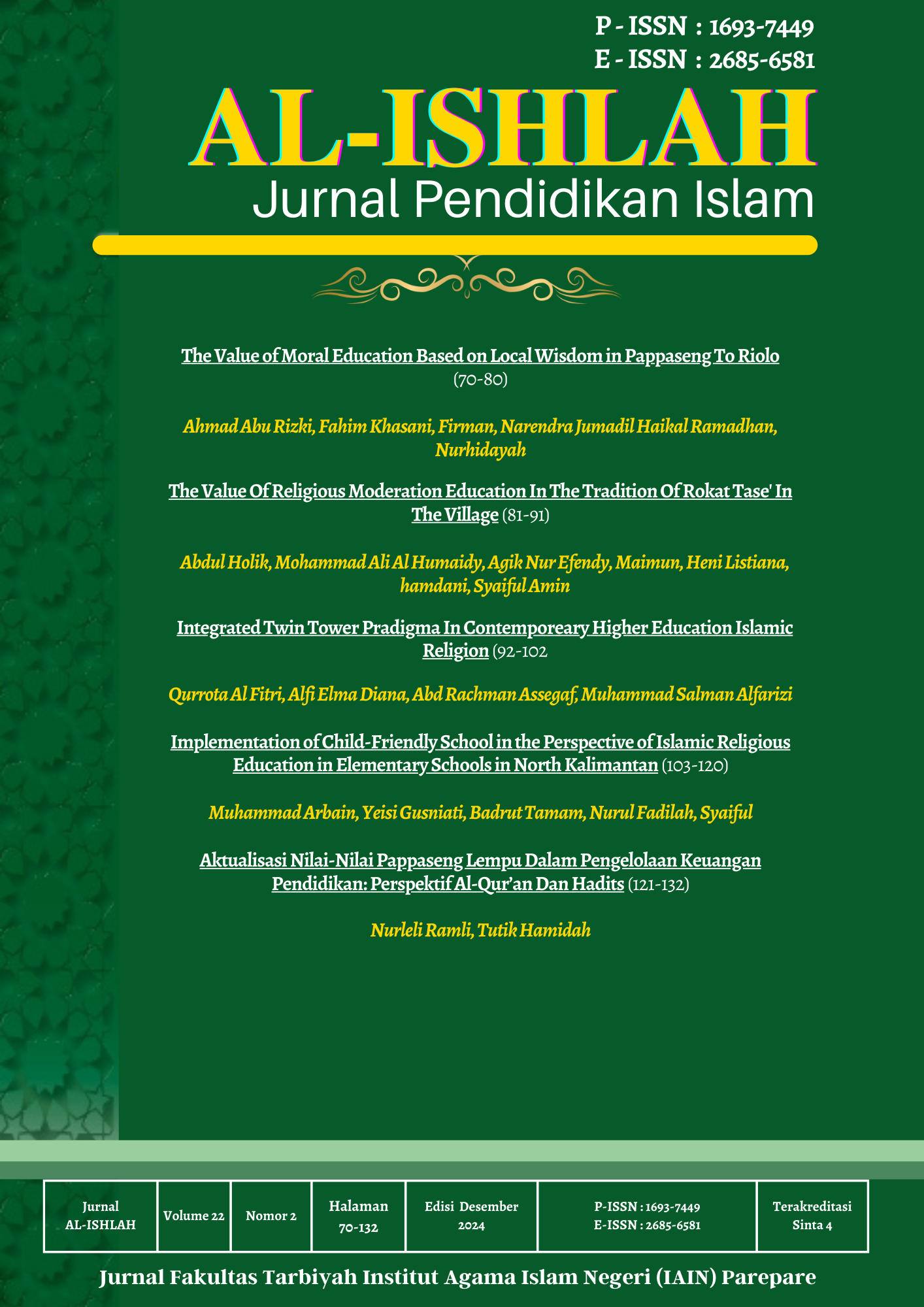 Huda, N. (2021). Nilai-Nilai Pendidikan Akhlak Dalam Surah Luqman Dan Aplikasinya Pada Pembelajaran PAI. An-Nahdhah, 14(1).